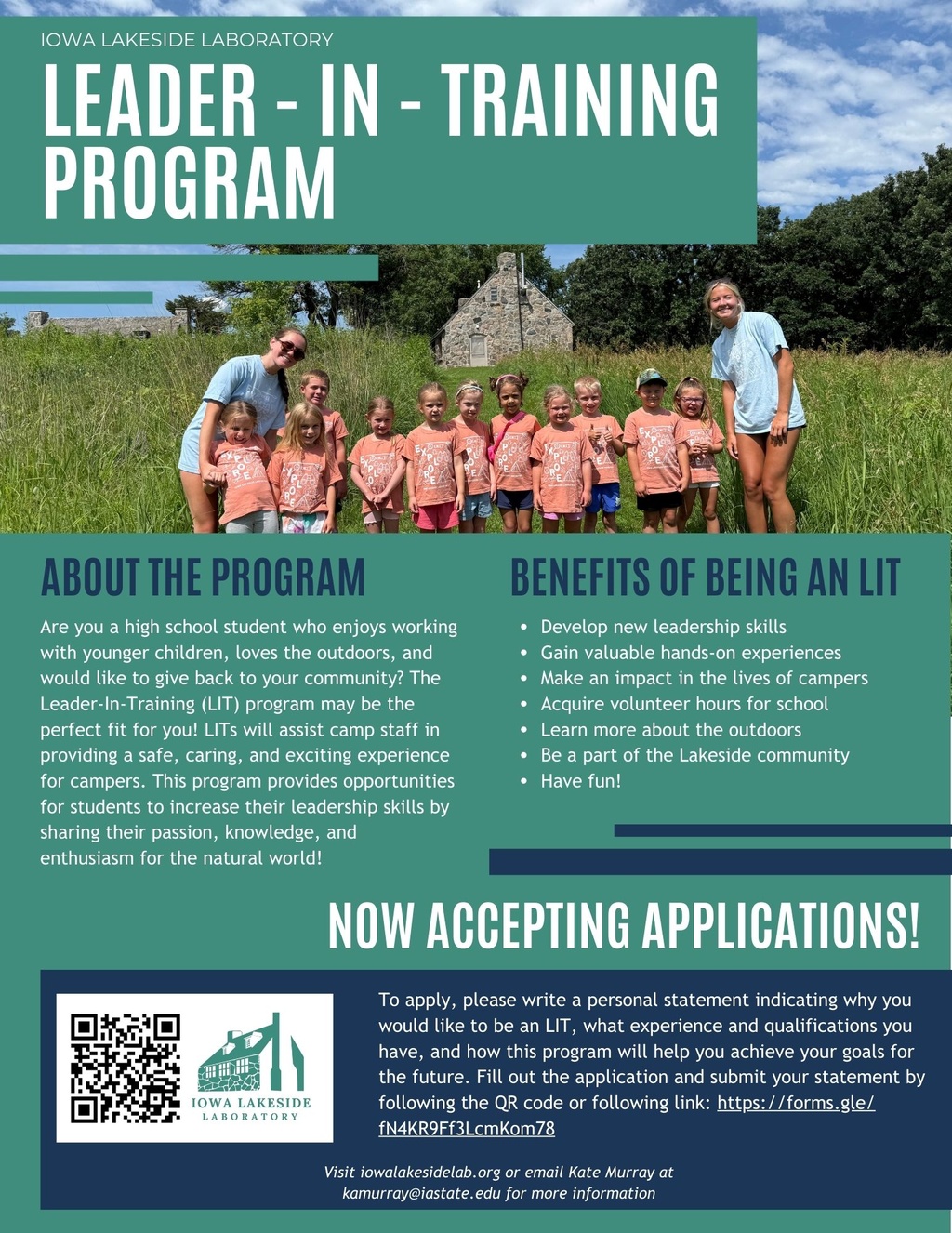 Are you a high school student who enjoys working with younger children, loves the outdoors and would like to give back to your community? The Leader-in-Training (LIT) program may be the perfect fit for you! LITs will assist camp staff in providing a safe, caring and exciting experience for campers. This program provides opportunities for students to increase their leadership skills by sharing their passion, knowledge and enthusiasm for the natural world!